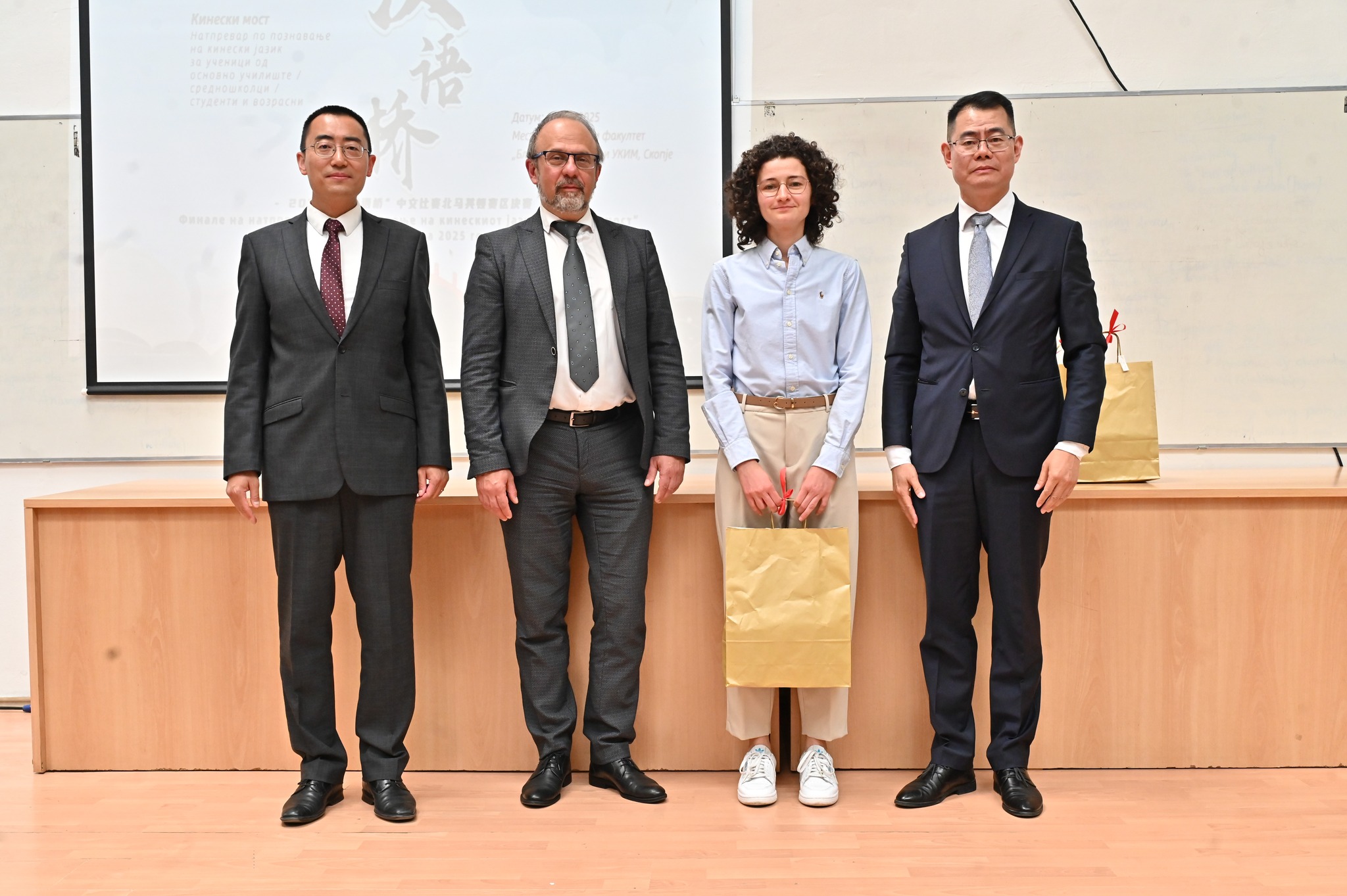 На 11 мај, на Филолошкиот факултет, Универзитетот Св. Кирил и Методиј“ во Скопје, успешно се одржа финалето на натпреварот „Кинески мост“.