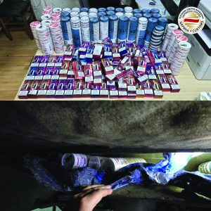 Производи за сценски ефекти (100 пакувања од 200 грама композитен титаниум за сценски ефект и 144 садови со течност за огнен ефект) се пронајдени при контрола на збирна стока која била со потекло од Кина, а наменета за увозник од Скопје. Стоката била пријавена за увозно царинење во царинската испостава Гевгелија и истата не била опфатена во царинските документи.