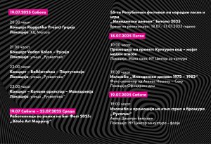 Во текот на летото, Битола ќе биде сцена на: концерти, театарски претстави, изложби, филмски проекции, уметнички перформанси и многу други настани кои ја слават културата и креативноста.