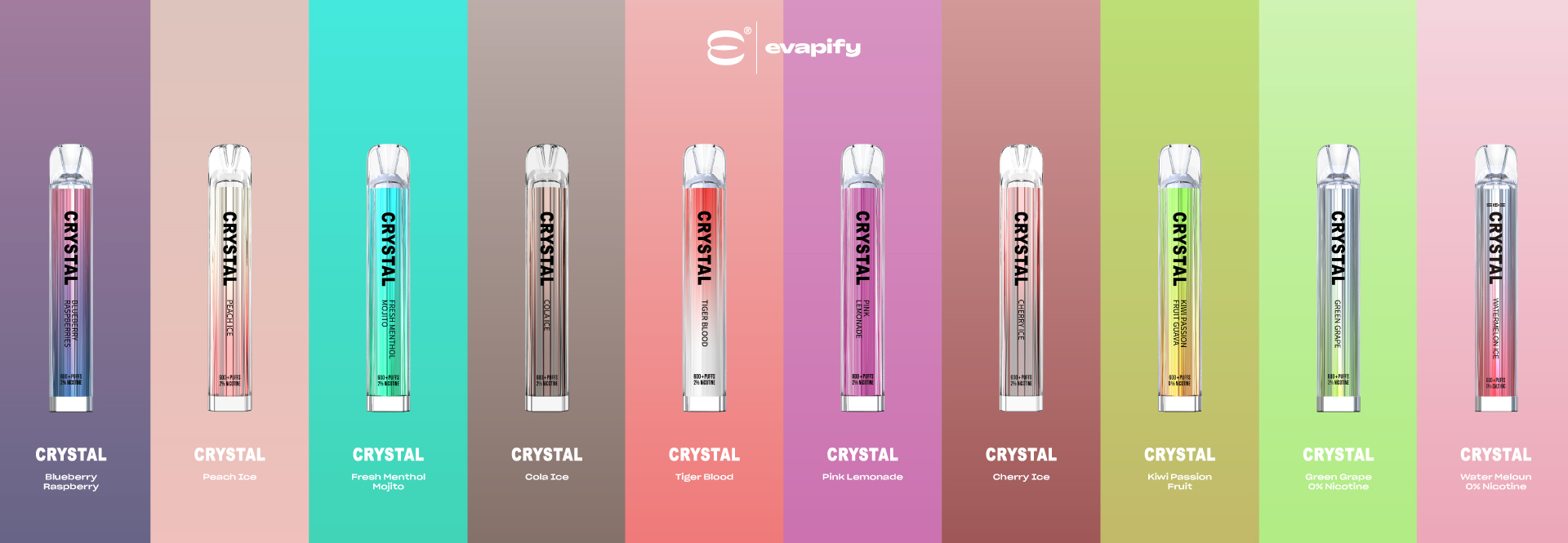 Палетата на вкусови кај некои производители се развива со цел да понуди разновидност и флексибилност за сечиј карактер, што најдобро може да го одрази неговиот стил и внатрешна енергија. На пример, вејп уредите CRYSTAL(глобално познат бренд присутен во над 50 земји) нудат широка палета на производи на нашиот пазар: