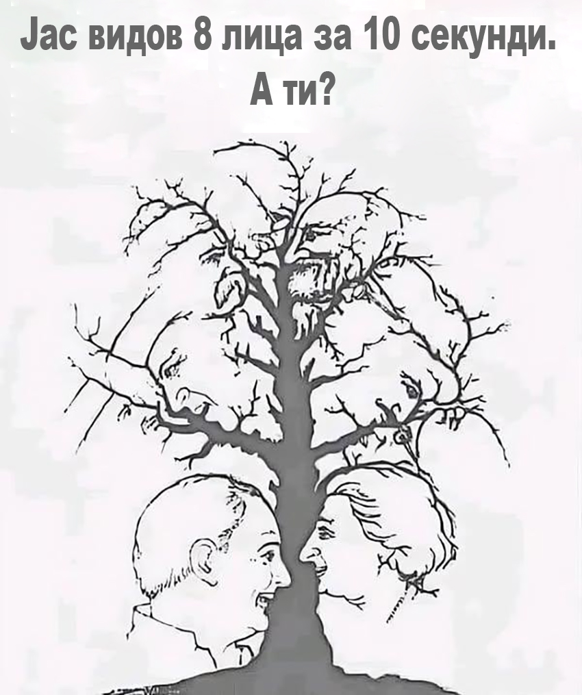 Во време кога виралните предизвици се менуваат од ден во ден, една стара загатка повторно стана хит на социјалните мрежи. Станува збор за оптичката илузија позната како „Дрво на лица“, која ги тера гледачите да бараат скриени портрети во гранките и лисјата на едно наизглед обично дрво.