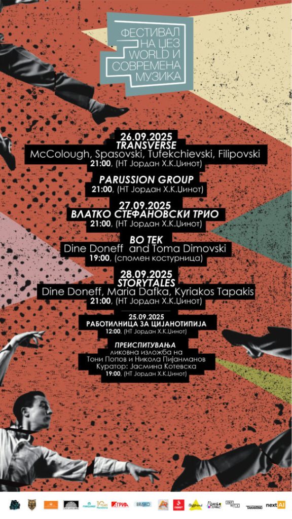 Утре, 26 септември, ќе настапат „Transverse“ (САД/МКД) и „Parussion Group“ (МКД), додека на паркингот пред театарот ќе настапи дуото „Edit Points“. На 27 септември, посетителите ќе можат да уживаат во бесплатниот перформанс „Во тек“ на Спомен-костурницата, а вечерта ќе има концерт на „Влатко Стефановски Трио“ во театарот, проследен со настап на групата „Паркети“. Последниот ден, 28 септември, ќе биде резервиран за проектот „Storytales“ на Dine Doneff (Грција), а по концертот ќе следи завршна забава со „Арт Генератор“.