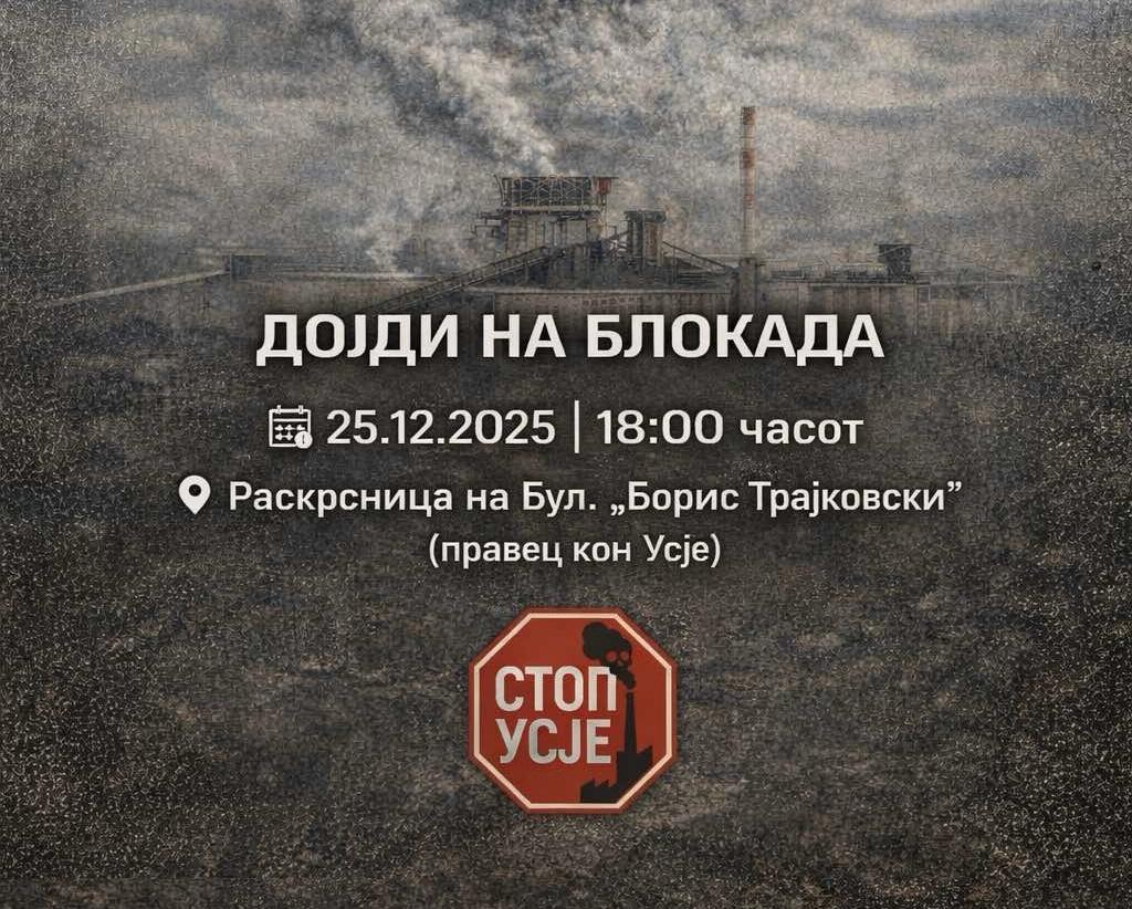 Граѓанската иницијатива „Стоп за Усје“ најави граѓанска блокада во четврток, 25 декември, со почеток во 18:00 часот, на раскрсницата меѓу булеварите „Борис Трајковски“ и „Србија“ во Скопје.