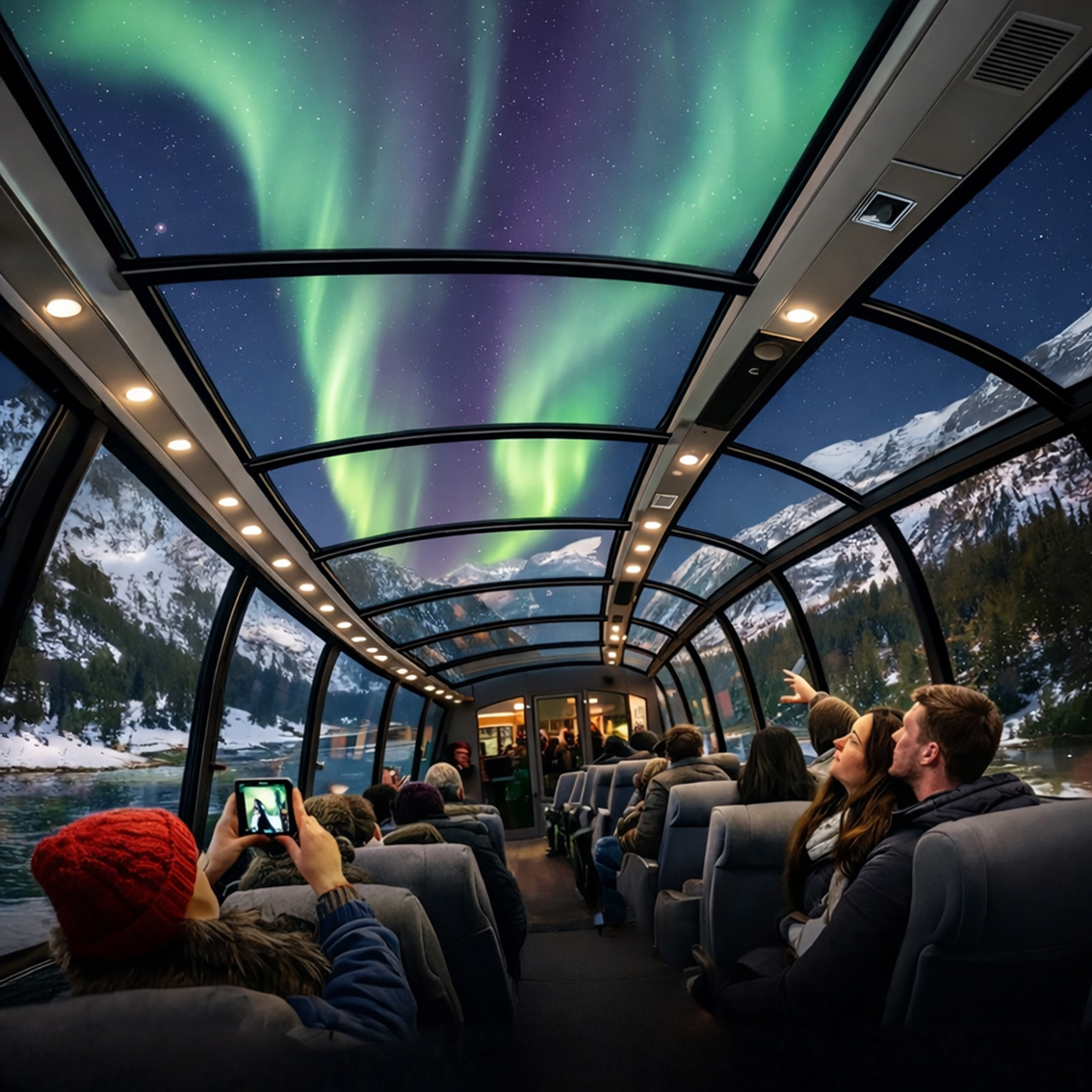 Наместо туристите да стојат со часови на екстремен студ, новиот воз им овозможува да го доживеат овој природен феномен од топла и комфорна внатрешност, во бавно движечки воз опремен со огромни панорамски стаклени прозорци, специјално изработени за намалување на отсјајот и максимална видливост на ноќното небо.
