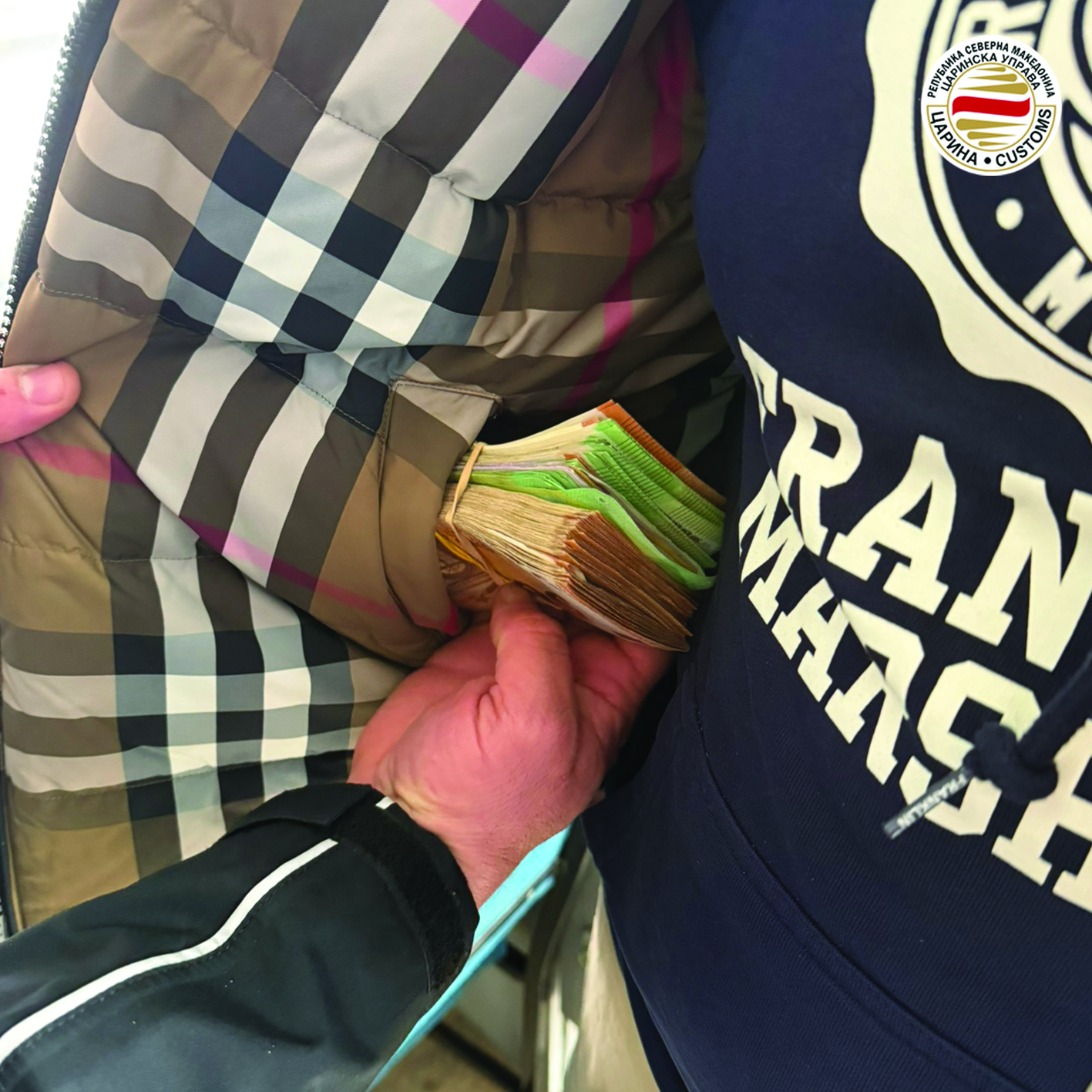 На граничниот премин Табановце – автопат, мобилен царински тим спречил обид за нелегално изнесување 13.900 евра, три златни монети и една златна плочка од околу 90 грама, откриени кај двајца грчки државјани. При личен претрес кај возачот биле пронајдени вкупно 23.900 евра и златните предмети. Согласно закон, вратени му биле 10.000 евра, додека остатокот и златото се привремено задржани.