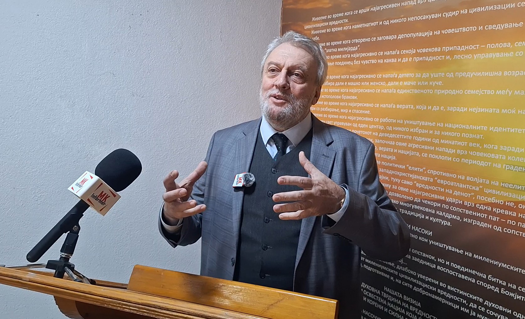 Тој додаде дека, иако Македонија денес е независна држава, според МААК таа сè уште не е целосно суверена, оценувајќи дека пред државата и народот стојат сериозни предизвици.