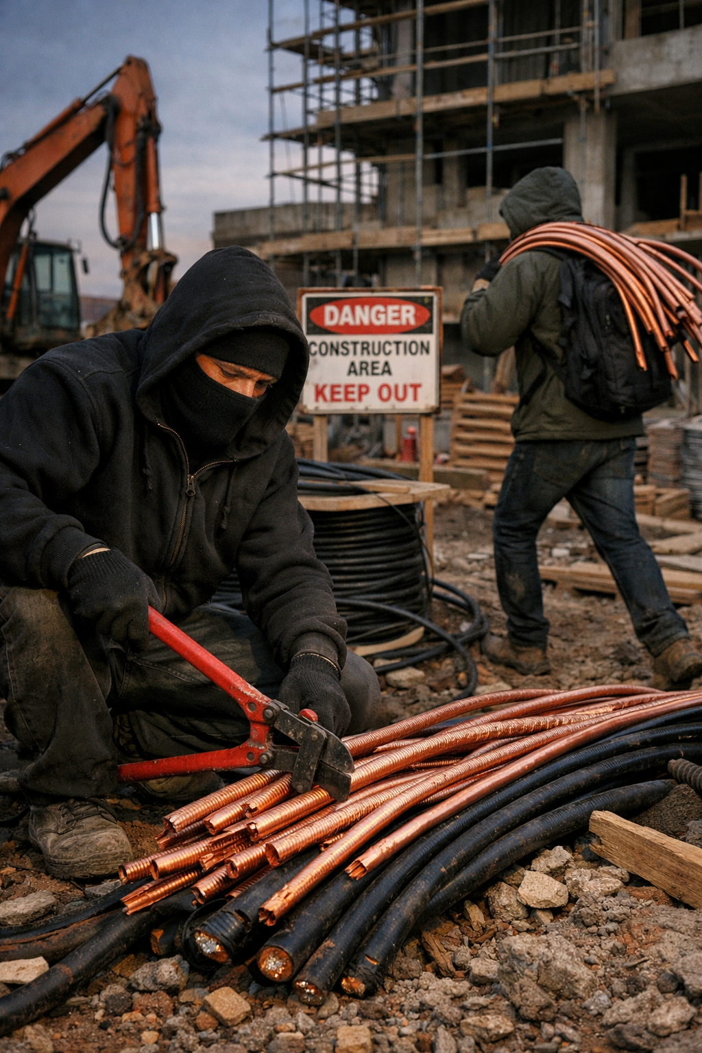 Голема кражба е пријавена на градилиште во скопската општина Центар, каде во изминатиот месец биле одземени бакарни кабли со должина од 2 километри, во вредност од околу 200.000 евра.