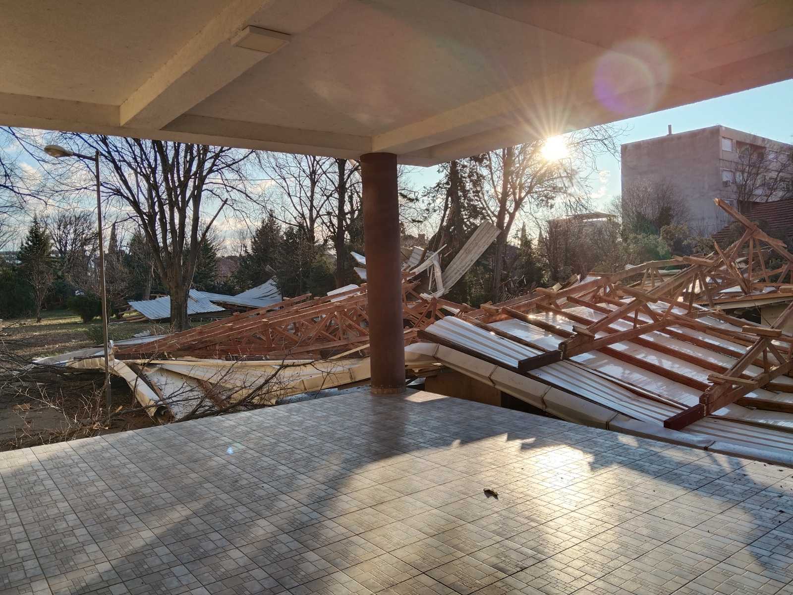 Поради силниот ветер што го зафати јужниот дел од земјата, летнала лимената конструкција од кровот на СОУ „Јосиф Јосифовски“-Гевгелија.