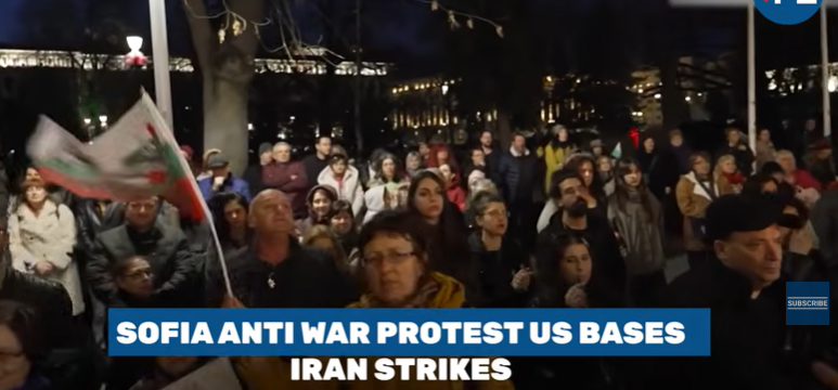 Антивоениот протест се одржа во Софија, каде демонстрантите носеа транспаренти со повици за мир и барања американските воени авиони и бази да бидат отстранети од бугарска територија.
