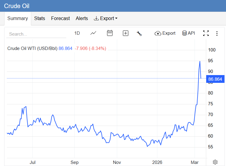 Според последните податоци, цената на нафтата од типот „брент“ падна на околу 92–95 долари за барел, откако претходно се искачи речиси до 120 долари. Падот на цените доаѓа по сигналите дека конфликтот во регионот би можел да се деескалира, што ги намали стравувањата од нарушување на глобалното снабдување со енергенси.