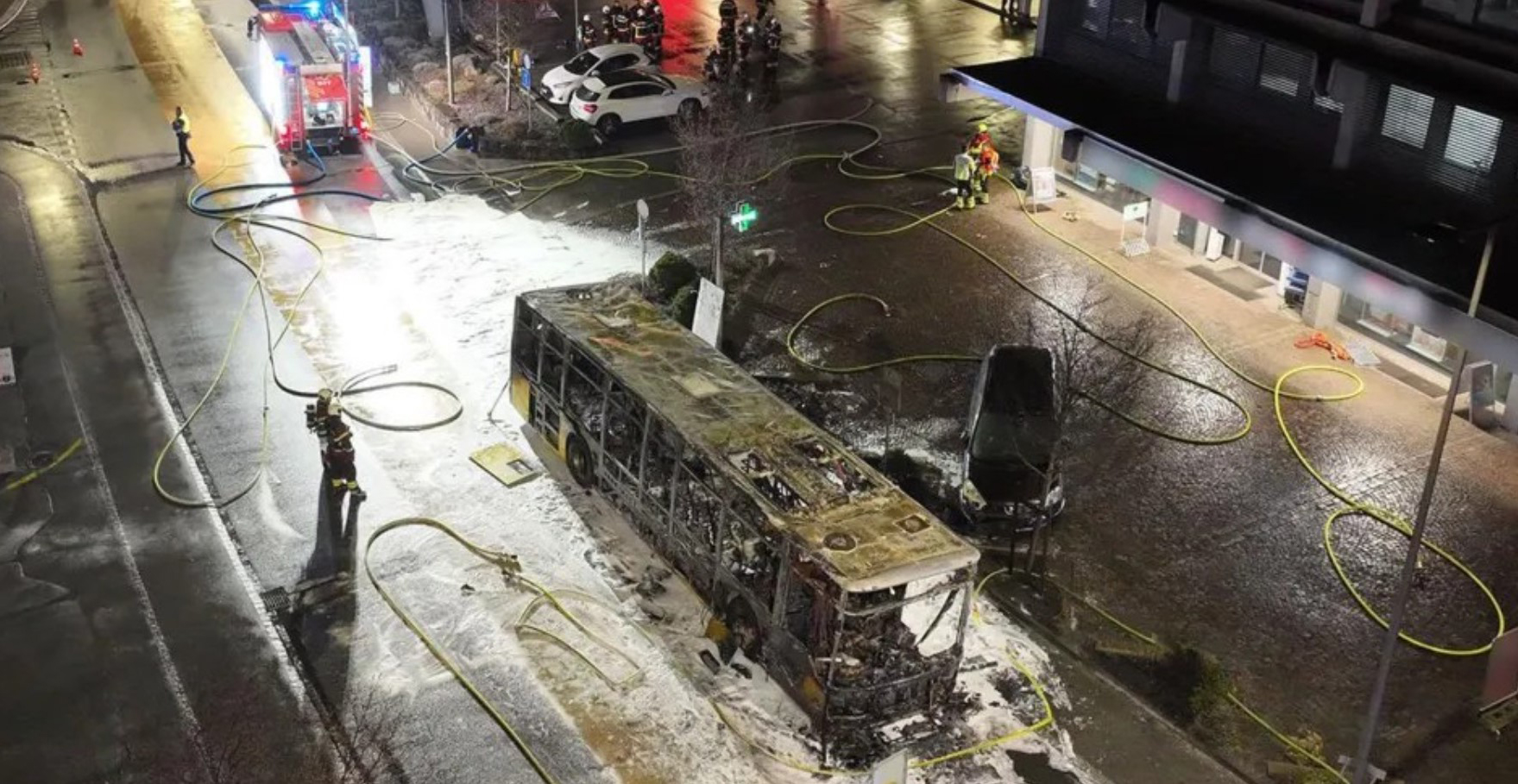 Според властите, автобусот сообраќал на локална линија кога се запалил во централниот дел на Керцерс, на околу 20 до 25 километри од швајцарската престолнина. Пожарот целосно го зафатил возилото, а на местото веднаш интервенирале пожарникари, полиција и медицински екипи.