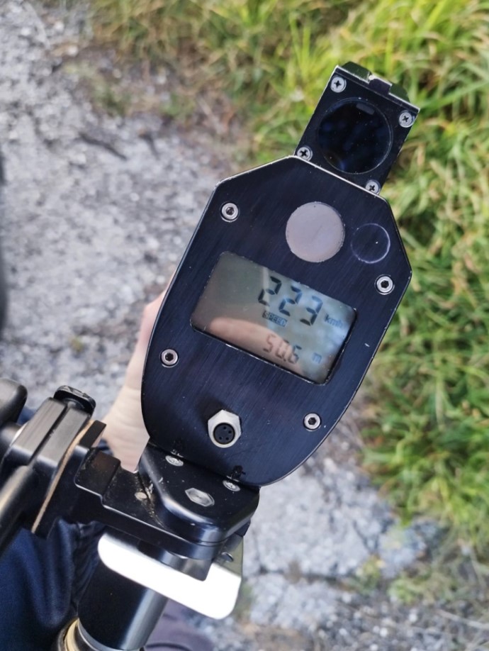 На нив се гледа радарот што ја регистрирал брзината, како и мотоциклот што го управувал уапсениот.