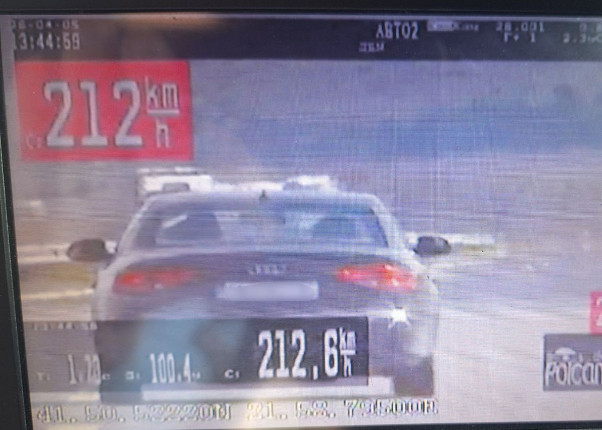 На автопатот Скопје-Штип, специјалното возило пресретнувач на МВР измери брзина од 212 километри на час кај патничко возило „ауди“ со светиниколски регистарски ознаки, управувано од А.Л. (24) од Свети Николе. Максимално дозволената брзина надвор од населено место изнесува 130 км/ч.