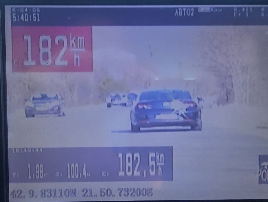 На регионалниот пат Куманово-Крива Паланка, полицијата забележа возило „опел“ со кумановски таблички, управувано од Д.Д. (37) од Куманово, кое се движело со 182 км/ч каде што ограничувањето е 80 км/ч.