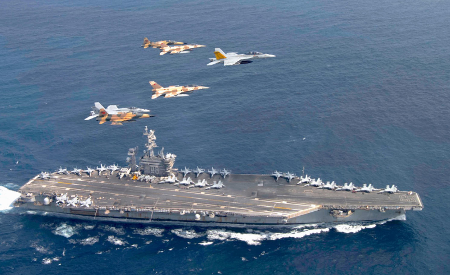 На сателитските снимки се забележани и два воени брода кои по големина и облик одговараат на американските разорувачи со водени ракети. Како што пренесува Би-Би-Си, тие најверојатно се дел од ударната група на „Линколн“, иако нивната точна идентификација сè уште не е официјално потврдена.
