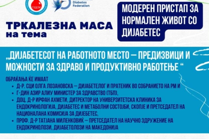 Вести Здравје здравство Македонија Светски ден на дијабетесот под мотото „Модерен пристап за нормален живот со дијабетес“ November 17, 2025